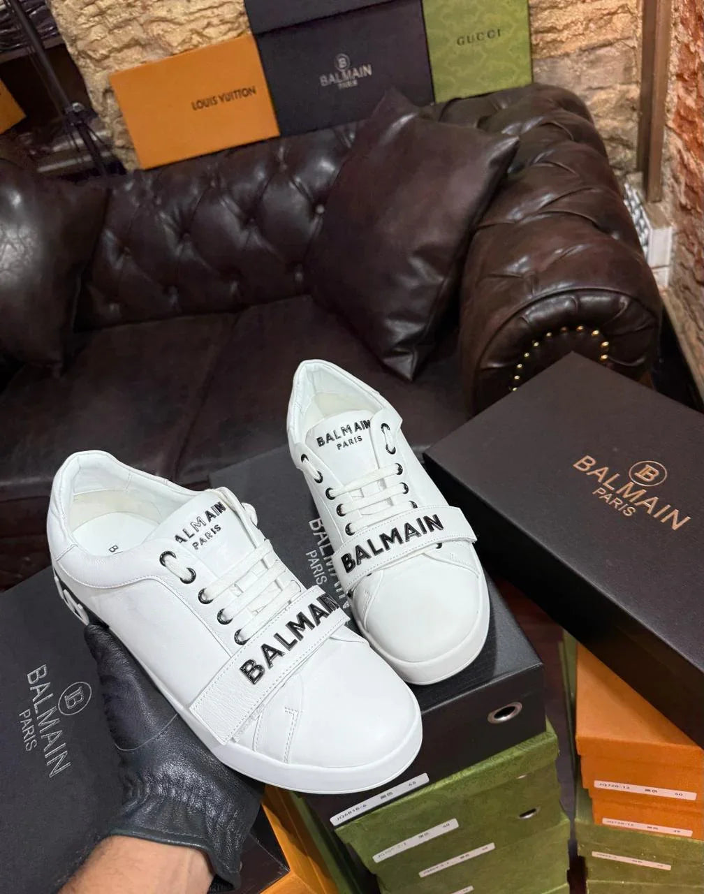 Command the streets with the undeniable presence of the Balmain Logo Strap Leather Sneakers. A bold declaration of modern Parisian luxury, these trainers are designed for the man who is confident, stylish, and unafraid to make a statement. They are the ultimate footwear for elevating your streetwear and smart-casual game in Dhaka this season.