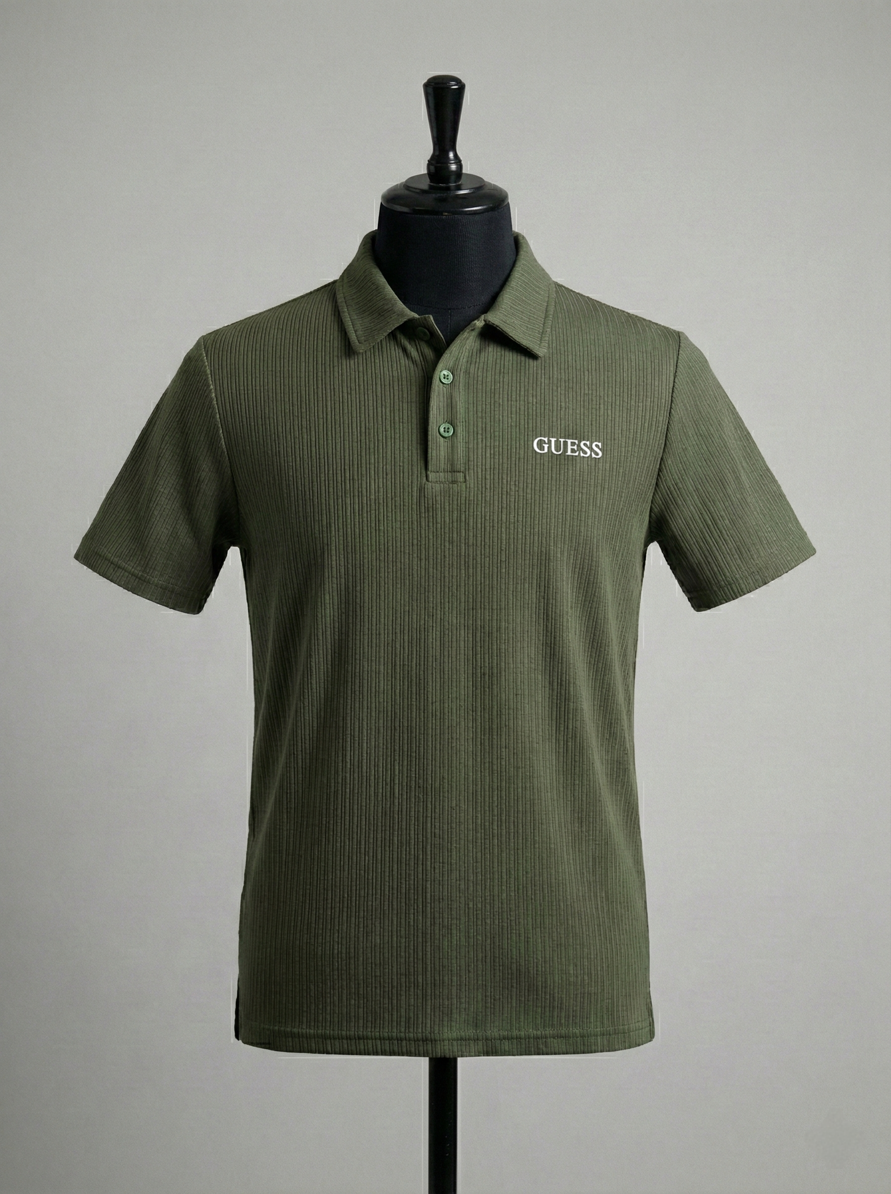 Presented in a versatile olive green colorway, this piece is finished with the classic "GUESS" spell-out logo embroidered in contrasting white on the chest. The structured collar and button placket make it sharp enough for smart-casual events, while the soft textured knit ensures relaxed comfort for weekend wear.