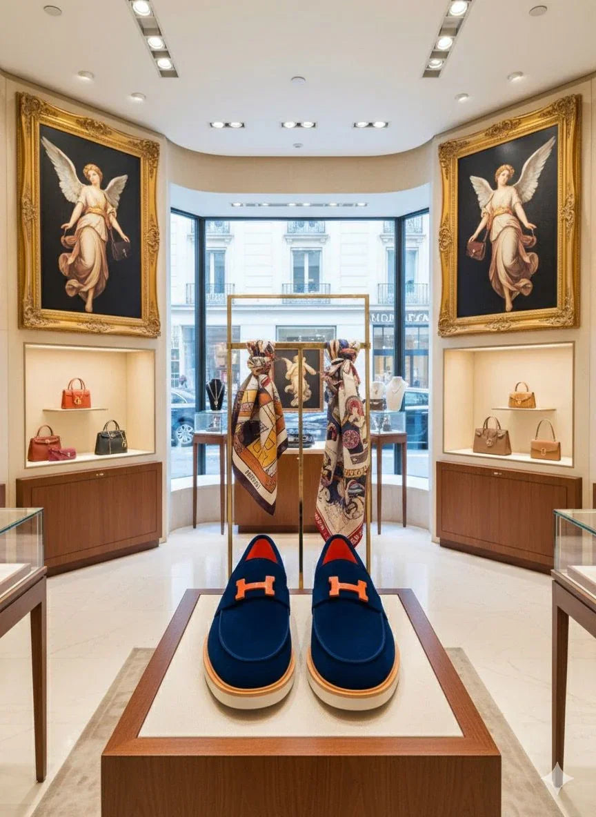 Hermès Men's 'H' Logo Suede Loafers | Navy & Orange Designer Casual Shoes