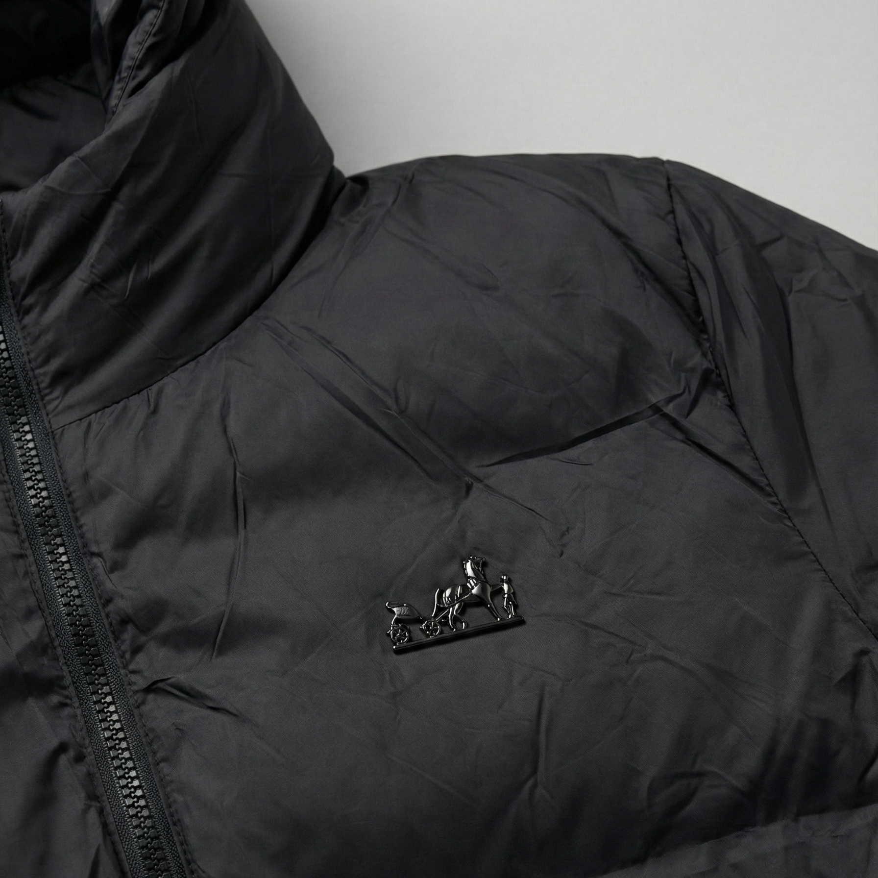 This imported "double part" puffer jacket offers versatile style and warmth for the winter season.