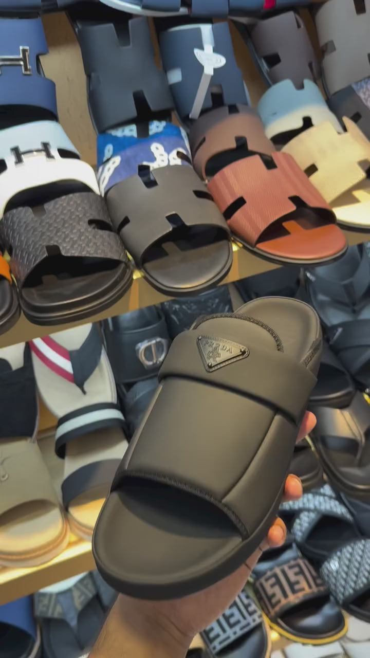Experience the perfect fusion of technical innovation and minimalist luxury with the Prada Padded Nylon Triangle Logo Slides. Designed for the modern man, these sandals are the ultimate expression of sophisticated, casual comfort. They are an essential piece for elevating your off-duty and resort wear in Dhaka.